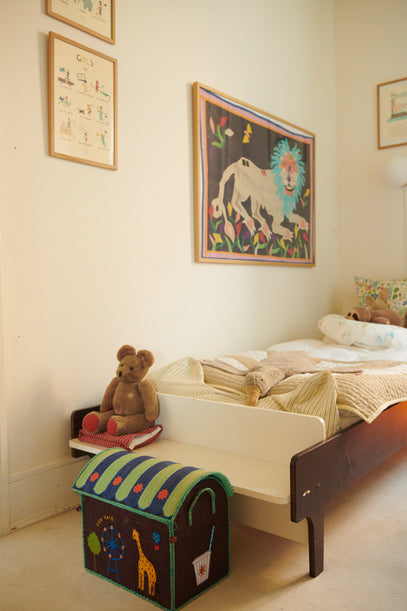 8-year-old Frank's room is full of colour yet feels calm once you enter his space. Shelves are filled with Frank's own creations, fun finds and lots and lots of books.