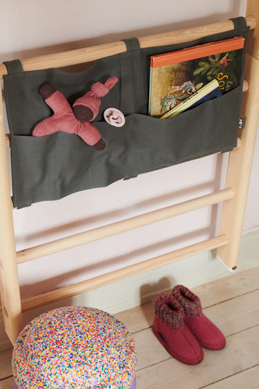 The canvas organizer, also from KAOS, allow for the girls to keep a favourite book and a favourite doll close at hand.