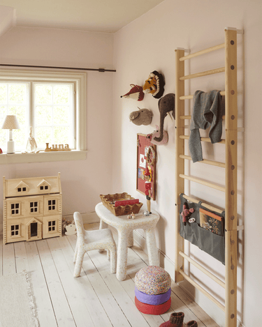 Once attached safely to the wall, the Wall Bar is the place for active children to climb, play, and move, offering a fun indoor activity that fosters gross motor skills. Unlike traditional wall bars, KAOS Endeløs Wall Bar is crafted as a beautiful piece of furniture you’ll be proud to have in your living space – not something to hide away in the basement.