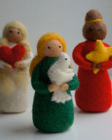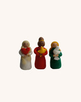 3 beautiful Christmas figurines made from wool carrying the signs of Faith, Hope and Love.