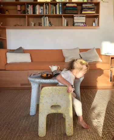 This is their table; a chubby-looking, playful table, matching the Charlie Chair perfectly. Its soft forms and rounded edges, as well as its sturdy body and legs, make this a great table for toddlers and kids.