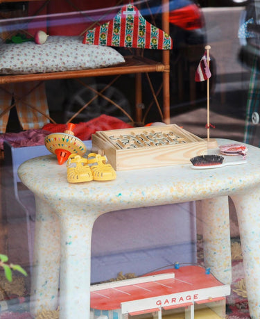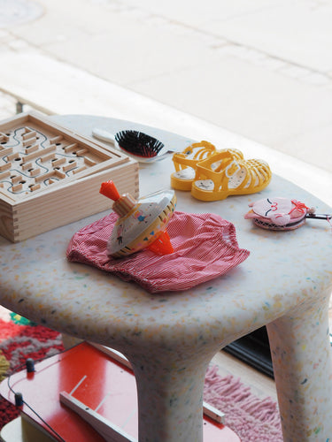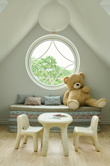 This is their table; a chubby-looking, playful table, matching their Charlie Chair perfectly. Its soft forms and rounded edges, as well as its sturdy body and legs, make this a great table for toddlers and kids.