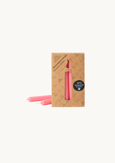 These natural candles are made of 10% raw wax material, with a burning time of about 1,5-2 hours. There are 12 candles are included in one box.