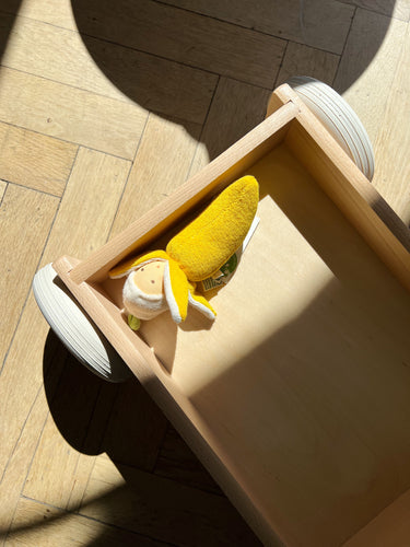 A push wagon is not just an assisted walking piece, it is also a fun toy: Place your favourite teddy in the wagon and you're ready to take him or her for a ride around the dinner table.