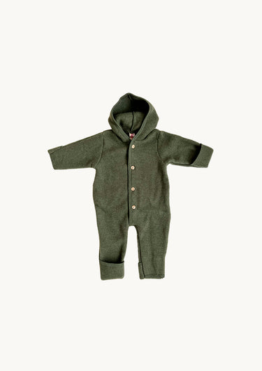 Keep your baby warm with this soft baby romper, made from certified organic wool fleece.
