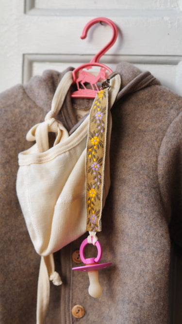 A classic baby suit that comes with a hoodie, rounded neck, classic fit and long sleeves. It comes with wooden buttons that go down the front.