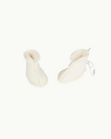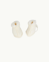 Lovely, warm, and cozy baby booties in a soft natural cream color from Quax. Thoughtfully designed to keep your baby’s delicate feet warm and comfortable in every season.