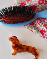 A fun hair accessory for all dog lovers. This adorable dachshund will add a cute pair of paws while keeping your hair in place.