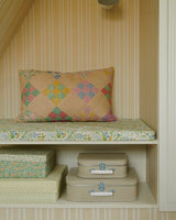 This cardboard suitcase come with cream coloured thread overstitching, and with a metal lining protecting the edges.