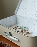 A wonderful light grey suitcase, perfect for treasures or for carrying stuff around the house, into the garden or on short trips.