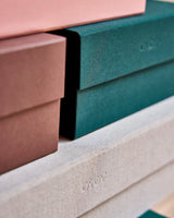 The Hako Storage Boxes come flat-packed and are easy to assemble. Available in three sizes and different colors.