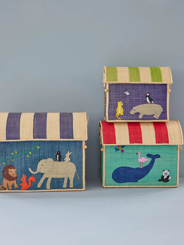 Pretty colours, a practical lid (the roof of the house), and wonderful, embroidered details make this storage basket suitable to place anywhere in the house.
