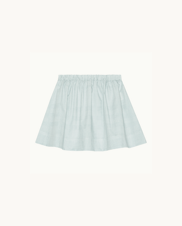 A lovely, knee-length skirt in a delicate checkered blue print.