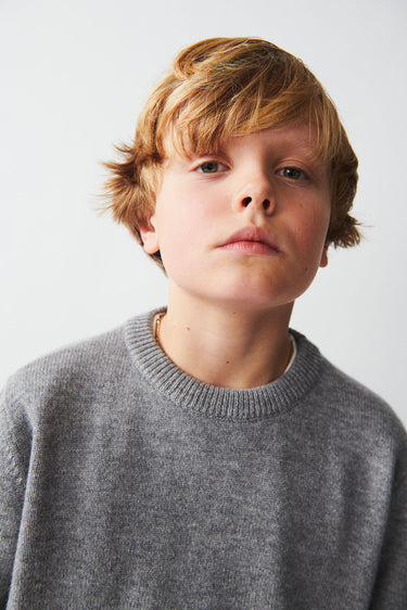 A soft, classic cashmere sweater made to fit boys and girls.