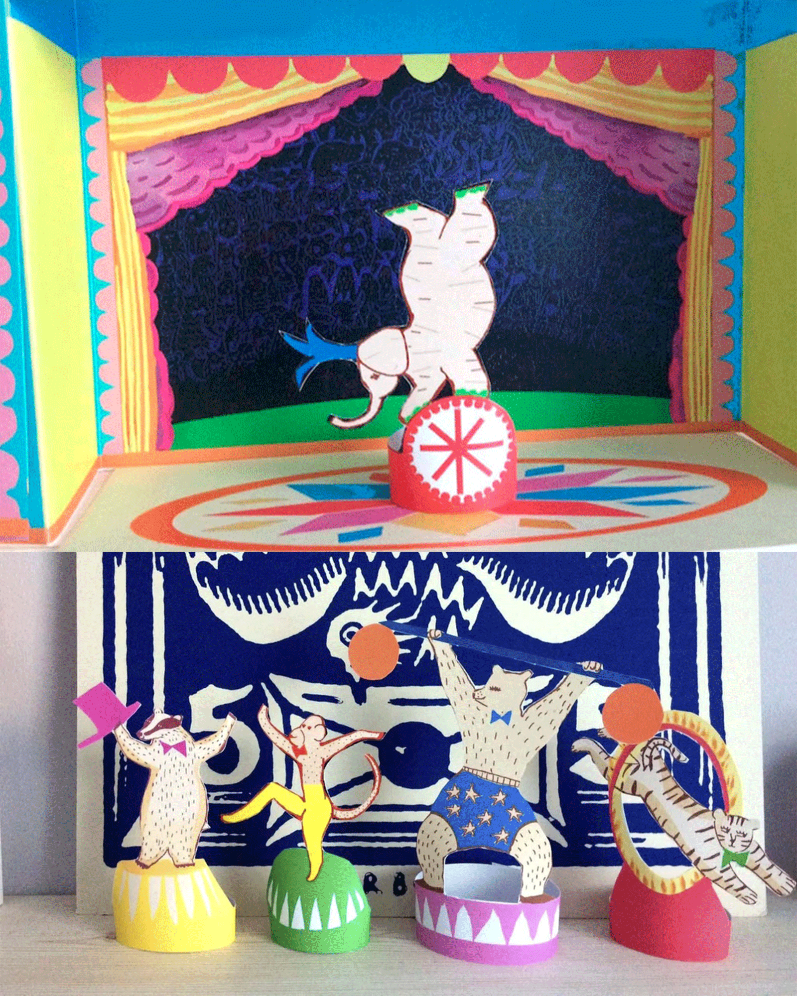 A charming and colourful circus, ready to cut and make together – a parent and child activity that takes about 45 minutes to assemble.