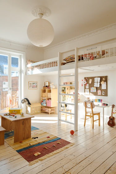 "Vi fik køjesengen af vores søde naboer, hvis børn var blevet for store til den. Den var med til at forme værelset, for nu var der både plads til at lege og til at sove".