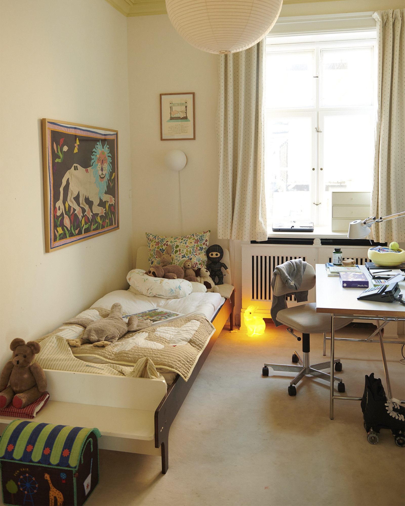 Sengen har et moderne design og kommer med en indbygget bænk for enden af sengen – perfekt til læsning, leg eller som en ekstra siddeplads.