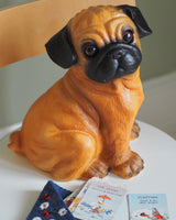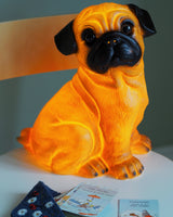 En sød lampe, formet som en bulldog, der giver et varmt og blødt lys.