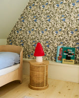 Denne skønne børnelampe er designet som en svamp, og er en humoristisk, dekorativ lampe til børneværelset. De små huller i toppen af svampen gør, at lyset skinner igennem i delikate lysstrømme og giver en hyggelig og rolig stemning.