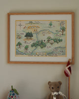 En sød og fin plakat af Peter Plys' 100 meter skoven. Plakaten har rolige farver, og kommer med mange fine detaljer.