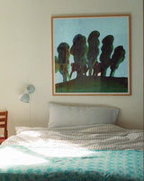 Bredde 100 cm x længde 100 cm. Bemærk venligst, denne størrelse laves på bestilling og kan kun bestilles med tilhørende egetræsramme.