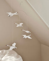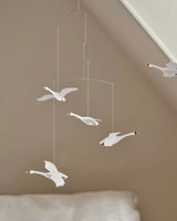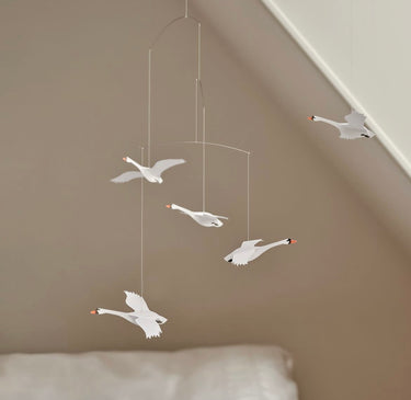 En rolig og smuk uro med fem smukke, hvide svaner.