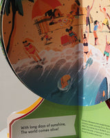 Hver side har desuden detaljerede oplysninger og fakta, og opfordrer selv de små læsere til at overveje og udforske deres eget nærmiljø, samtidigt med, at det sættes i en global kontekst.