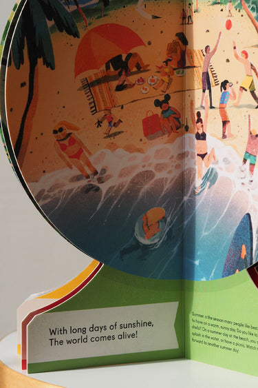Gennem 26 sider med rimende vers og vidunderlige illustrationer dækker denne bog alt fra den frosne vinter, det blomstrende forår, den varme sommer til det farverige efterår.