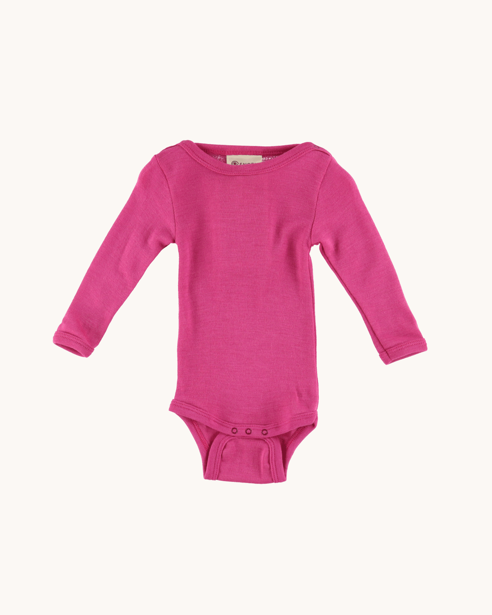 Den blødeste langærmede body lavet af uld og silke, som holder dit barn ved en konstant, perfekt temperatur hele dagen.