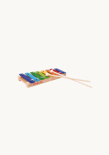 Classic xylophone with 8 keys in wonderful colours. Comes with 2 sticks for playing, and nodes.