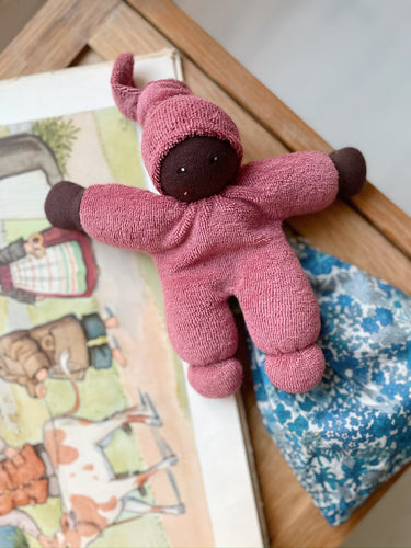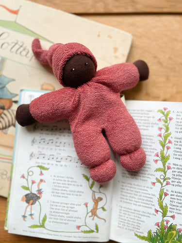 A lovely and incredibly soft little Pimpel Doll from Nanchen in a warm berry colour.