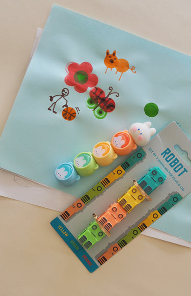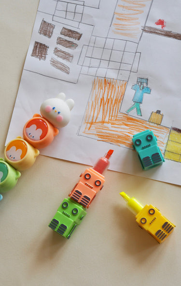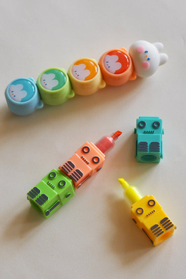 Funny little stackable robot highlighters. Featuring a playful design and vibrant colours, this set is perfect for getting organised while adding a cheerful touch to homework and revision.