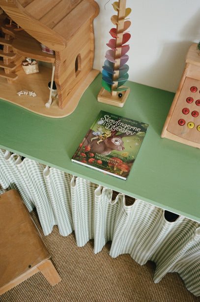 The table top has been painted in a soothing green tone, that compliments the earthy, brown tones from most of Eva's toys beautifully.