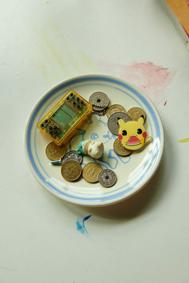 Also seen here: A magic spring, a small sand suitcase, and a Bunny Plate used to store coins and little knick-knacks.