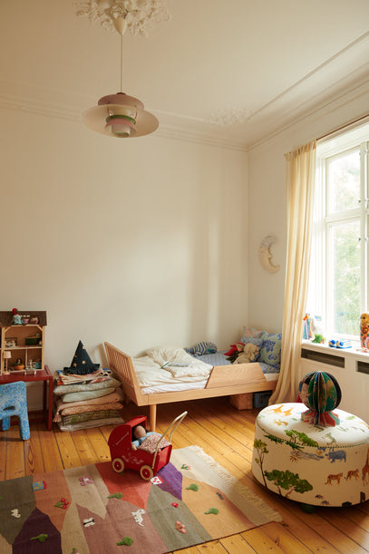Not much was planned ahead for 3-year-old Hilma's room, but that doesn't show: This space is warm, inviting, creative, playful, and most importantly, childish – a setting created by giving space to everything Hilma and her parents love.