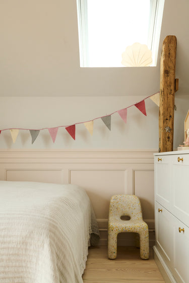 "I love how calm it feels in the girls' bedroom. I love laying on the bed at night time in a sea of pastel tones combined with the light coming through from the windows."