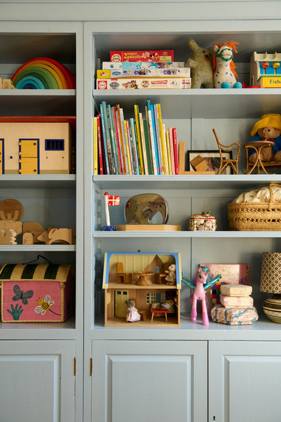 Open shelves on top allow for a wonderful and colourful display of everything, including a raffia butterfly storage basket. and a selection of games. Explore our selection here.