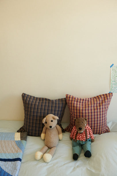 The book 'Den Fantastiske Bus' lies on Valdemar's bed, which is covered with a bed throw from Thompson Street Studio.