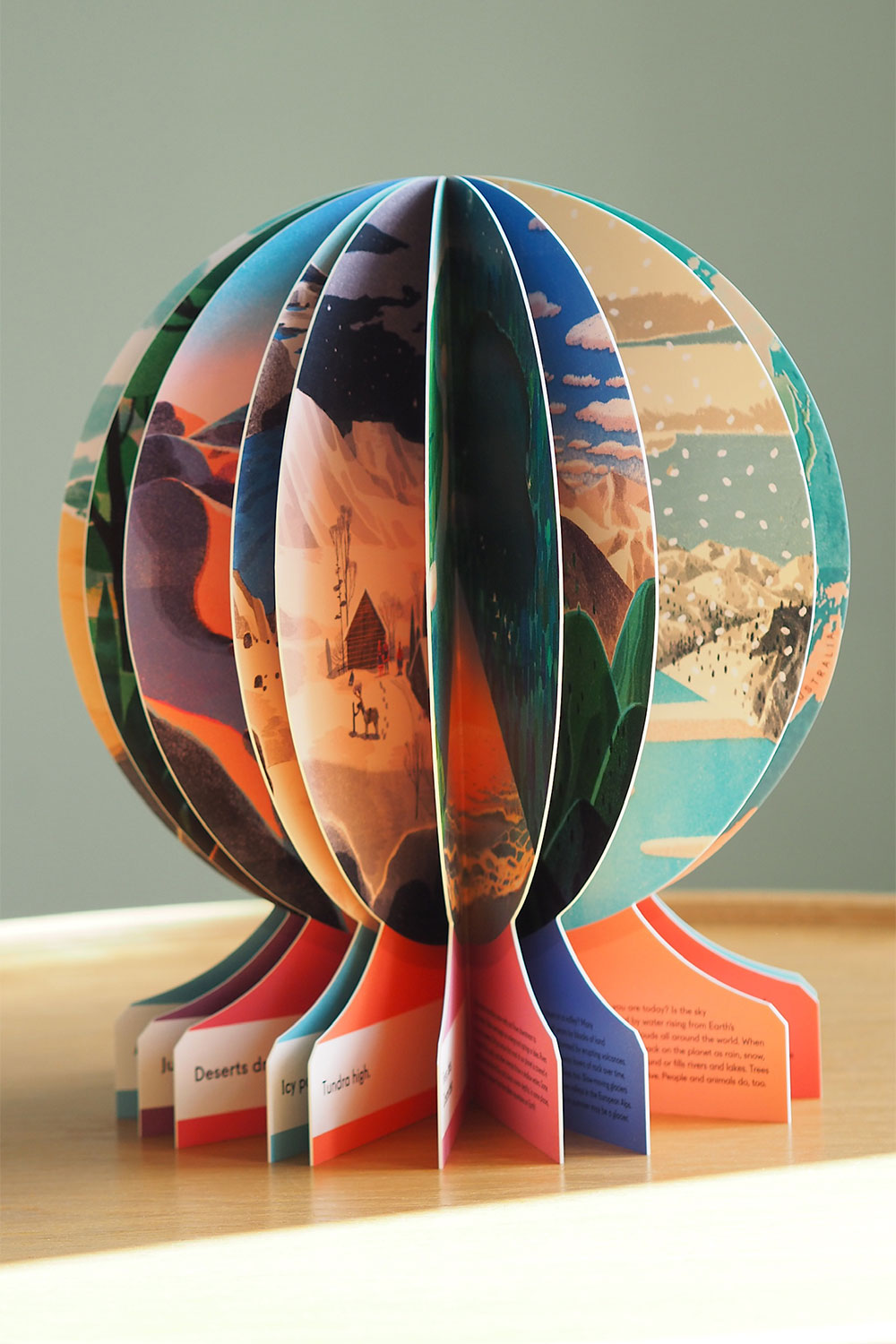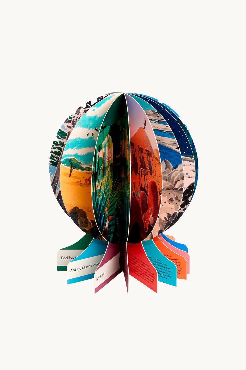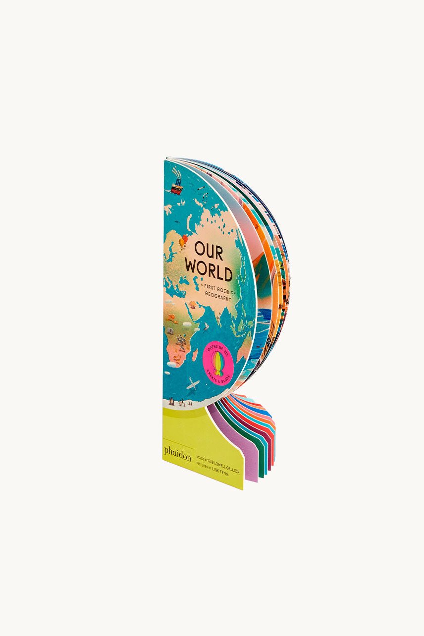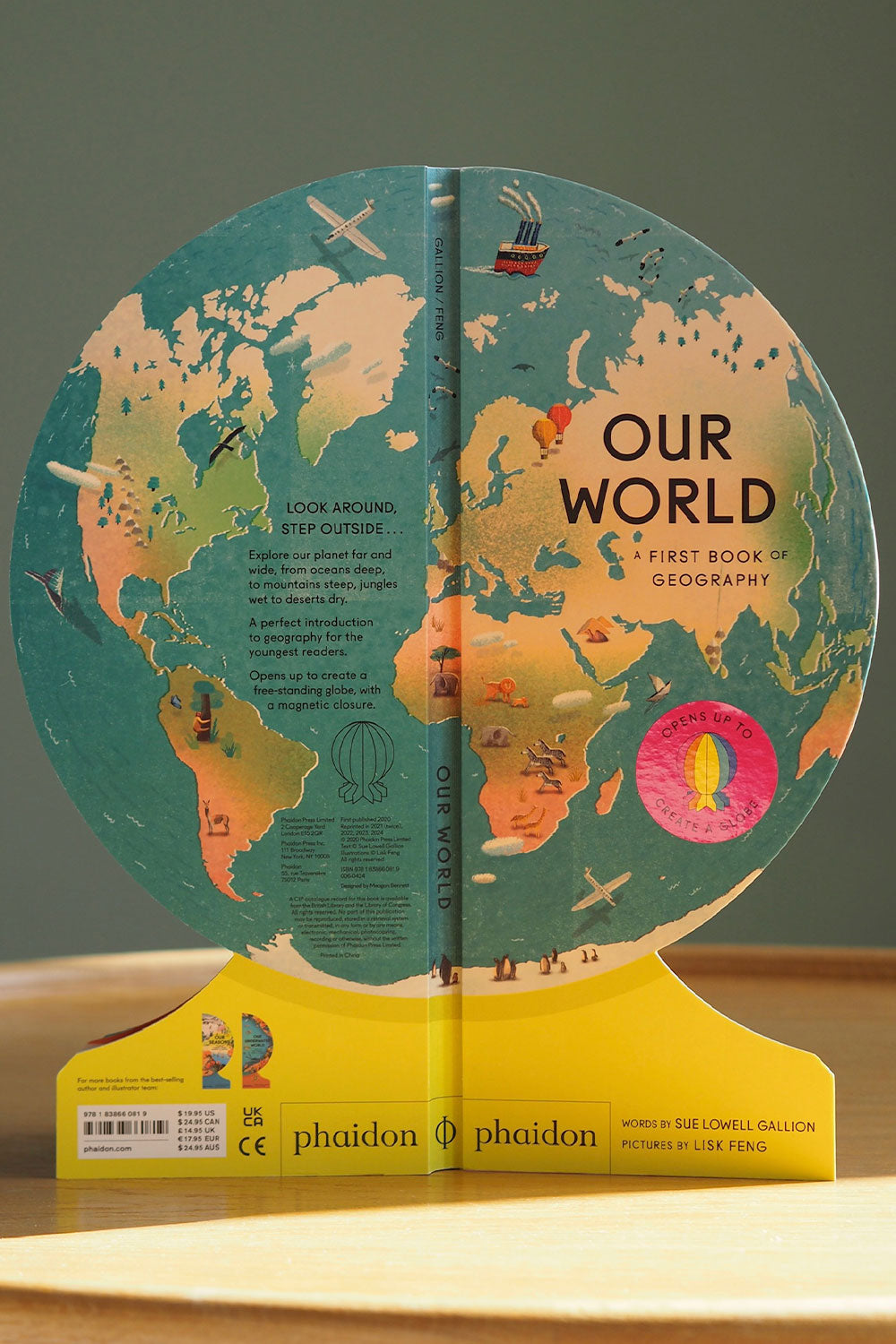 A wonderful, read-aloud introduction to geography with beautiful illustrations by Lisk Feng. When opened and folded back, the book creates a freestanding globe.