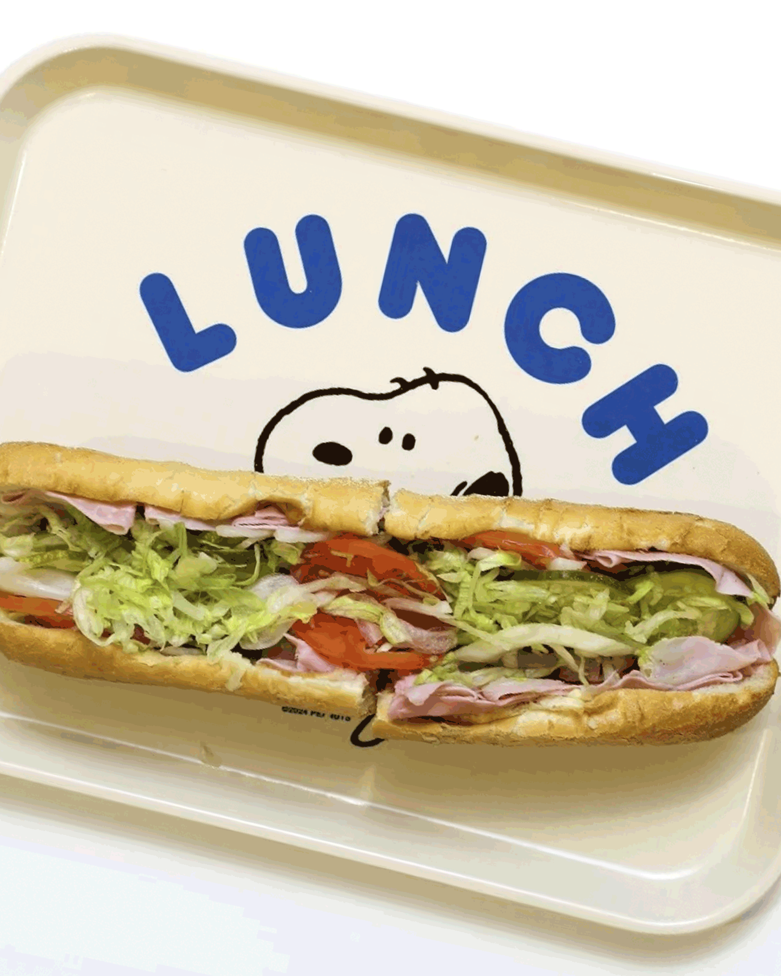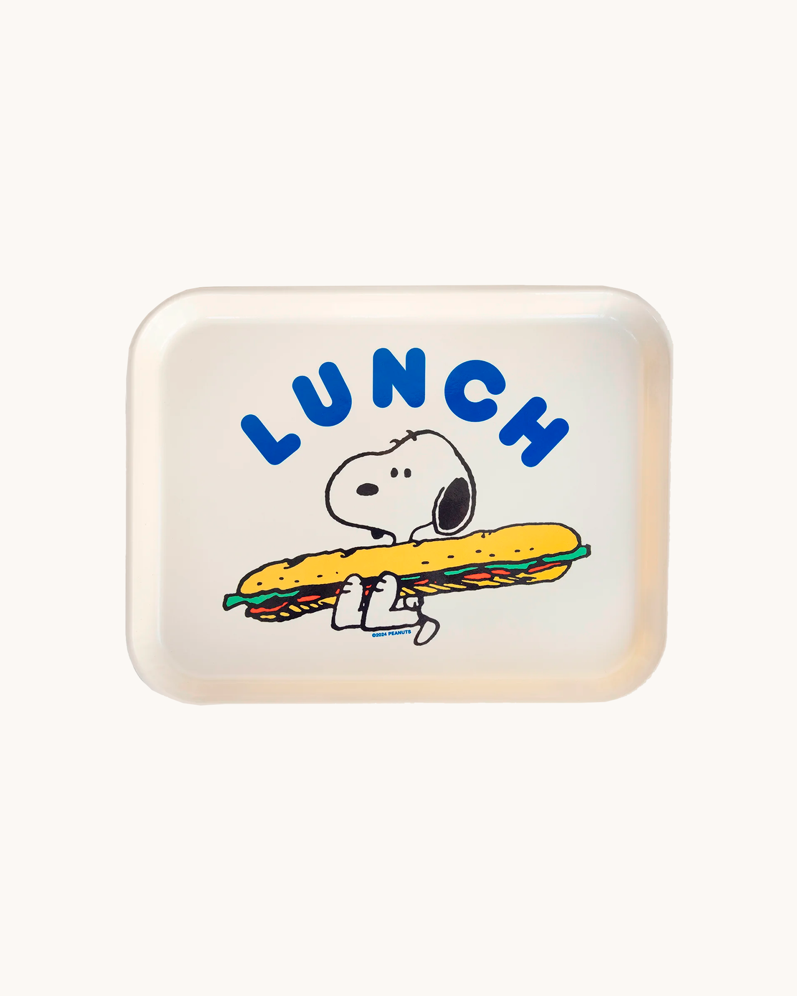 A large vintage-inspired lunch tray featuring our favorite dog Snoopy.