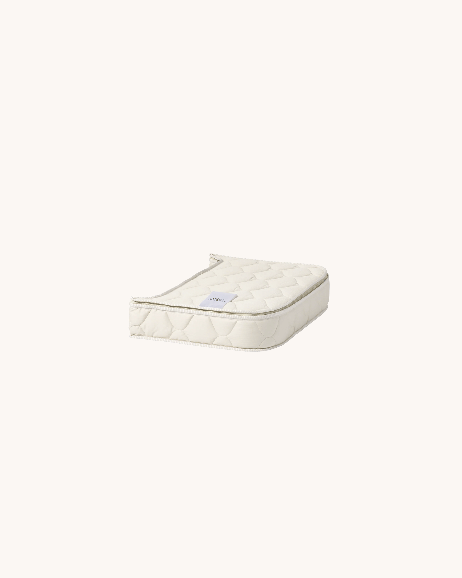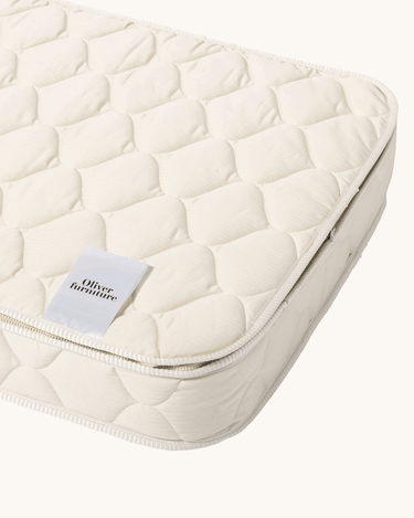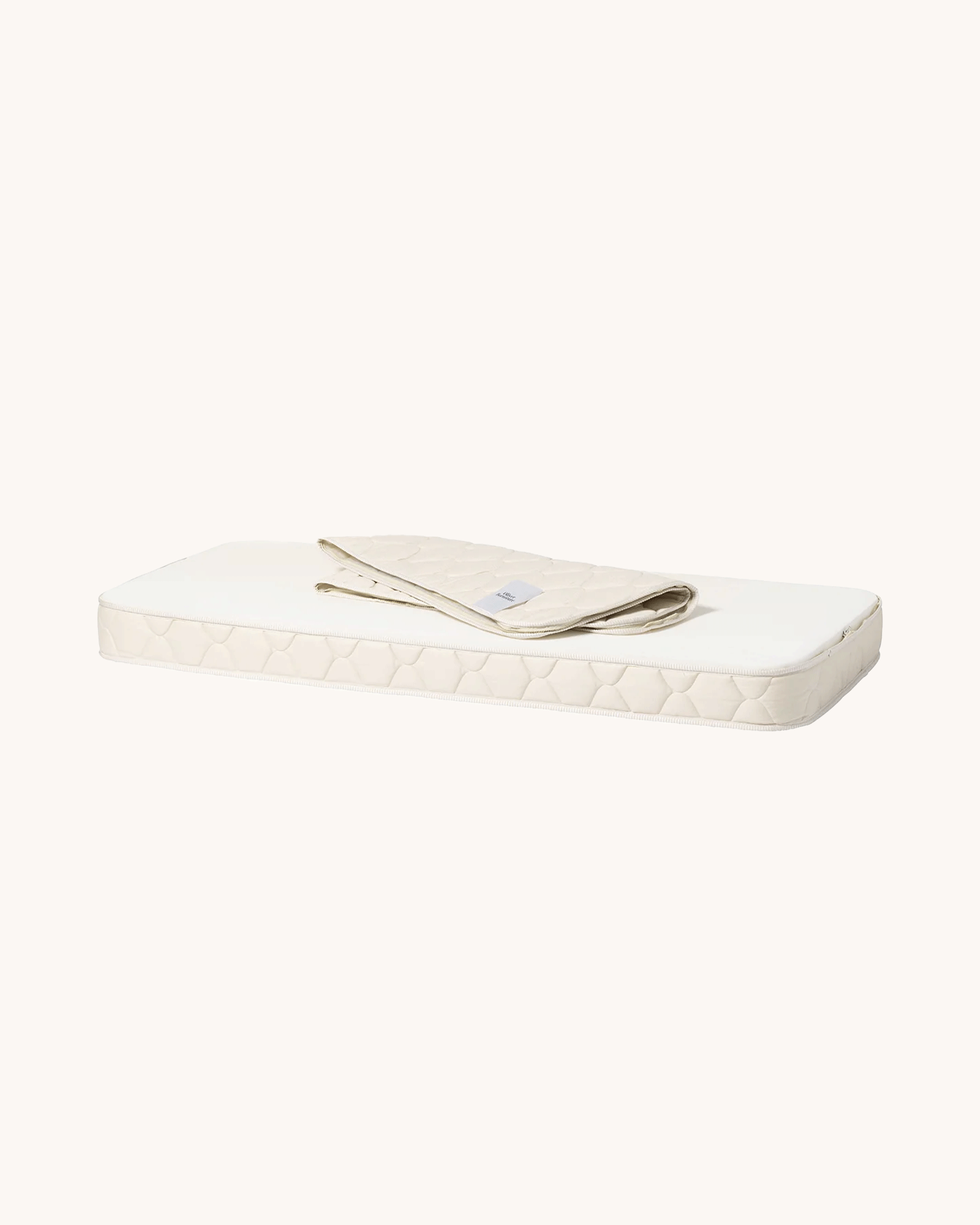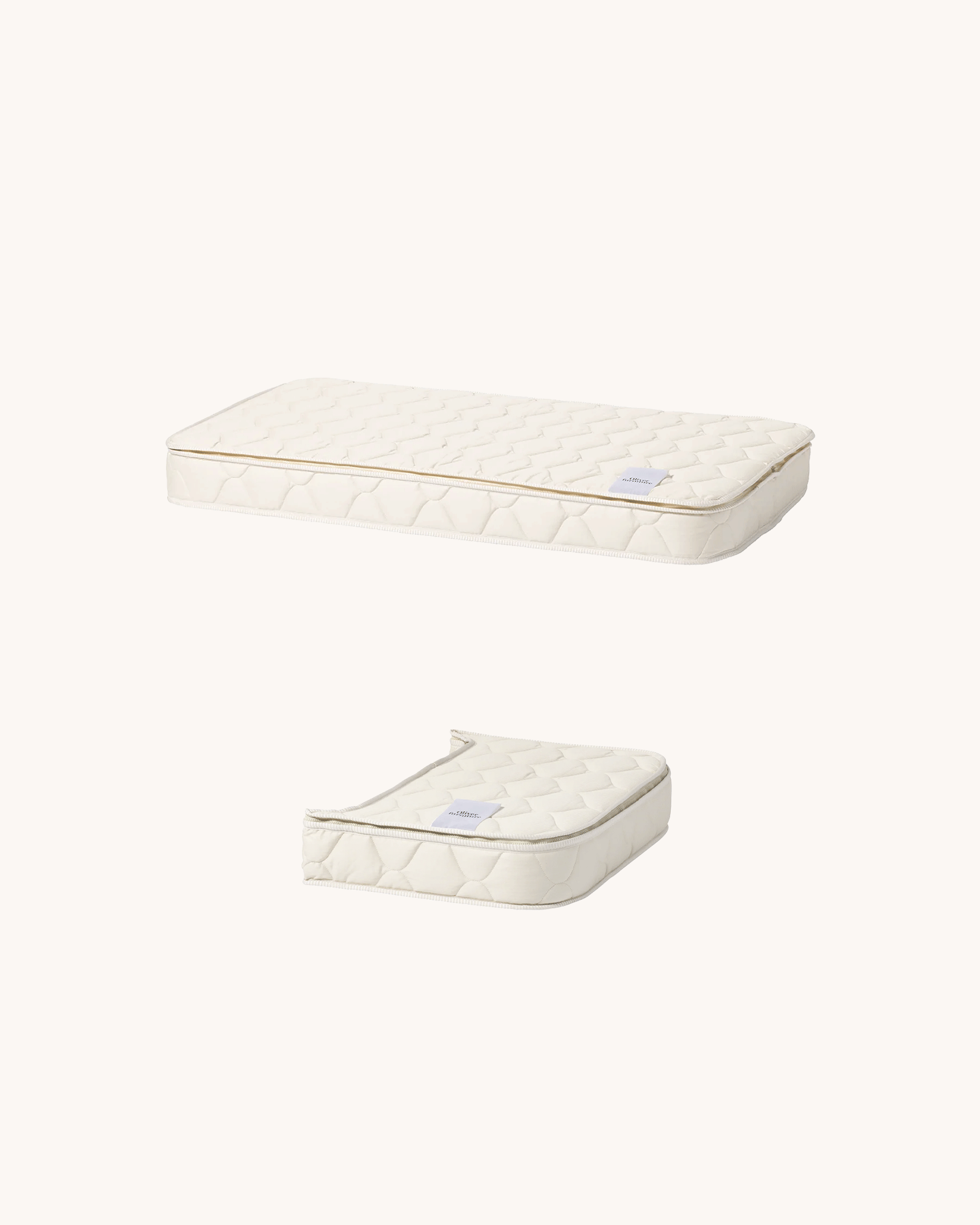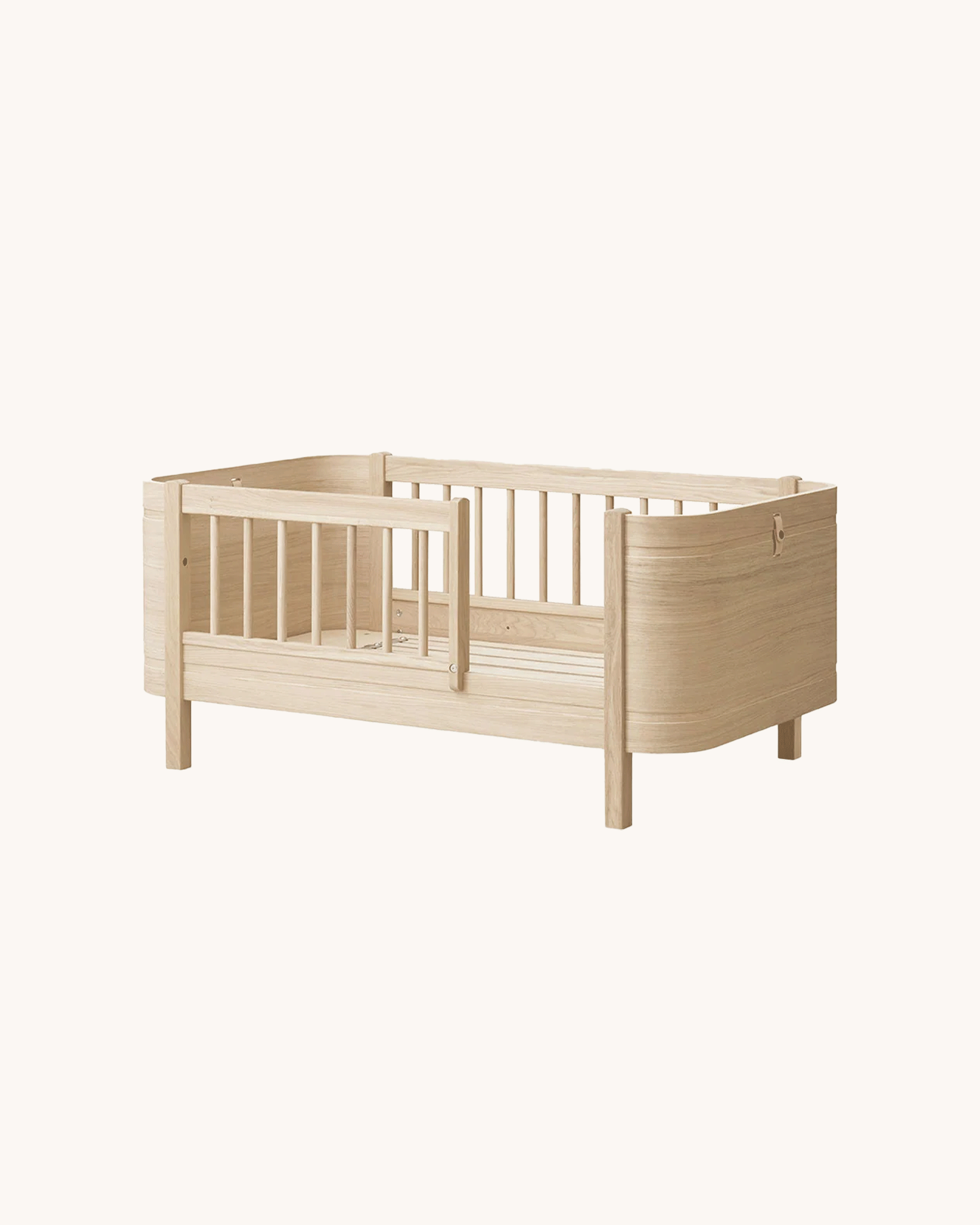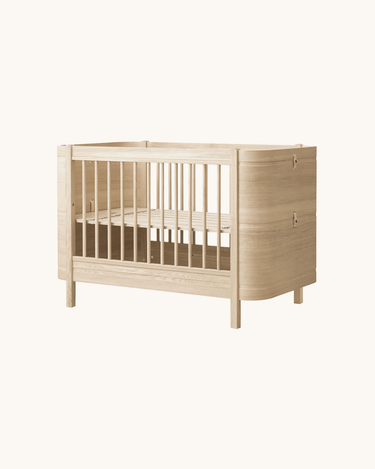 The Wood Mini+ bed complies with all European safety standards and norms. It is produced in Europe, and the wood is treated with a white-pigmented oil based on linseed, sunflower and jojoba oil.