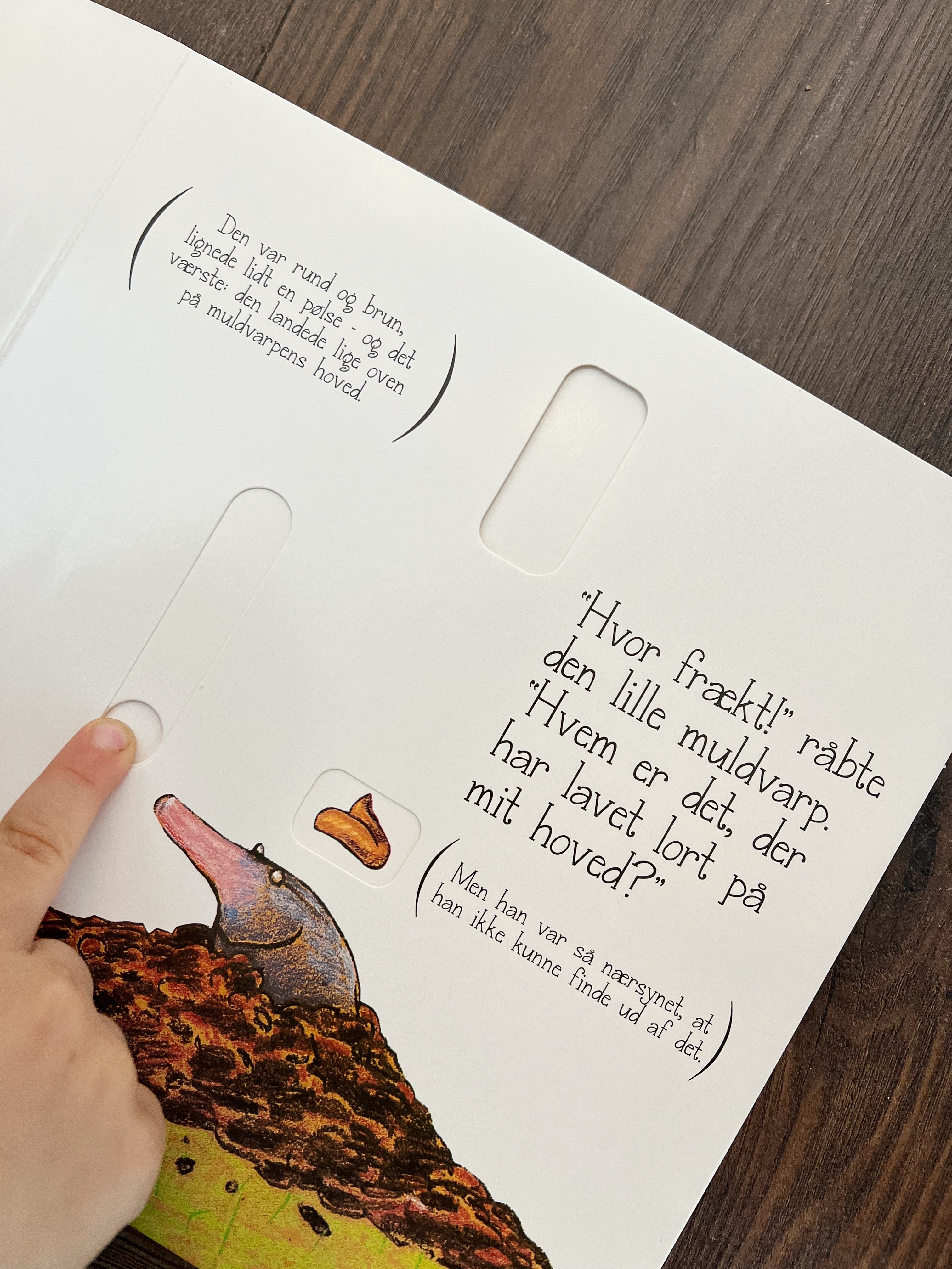 'Muldvarpen, der ville vide, hvem der havde lavet en lort på den hoved' has become a modern classic for children. It was first published in Danish in 1991.