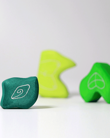 These colourful building blocks from Grimm's form a puzzle, but may also be used as a stacking toy or as part of a larger scene, where this set makes for a leaf.