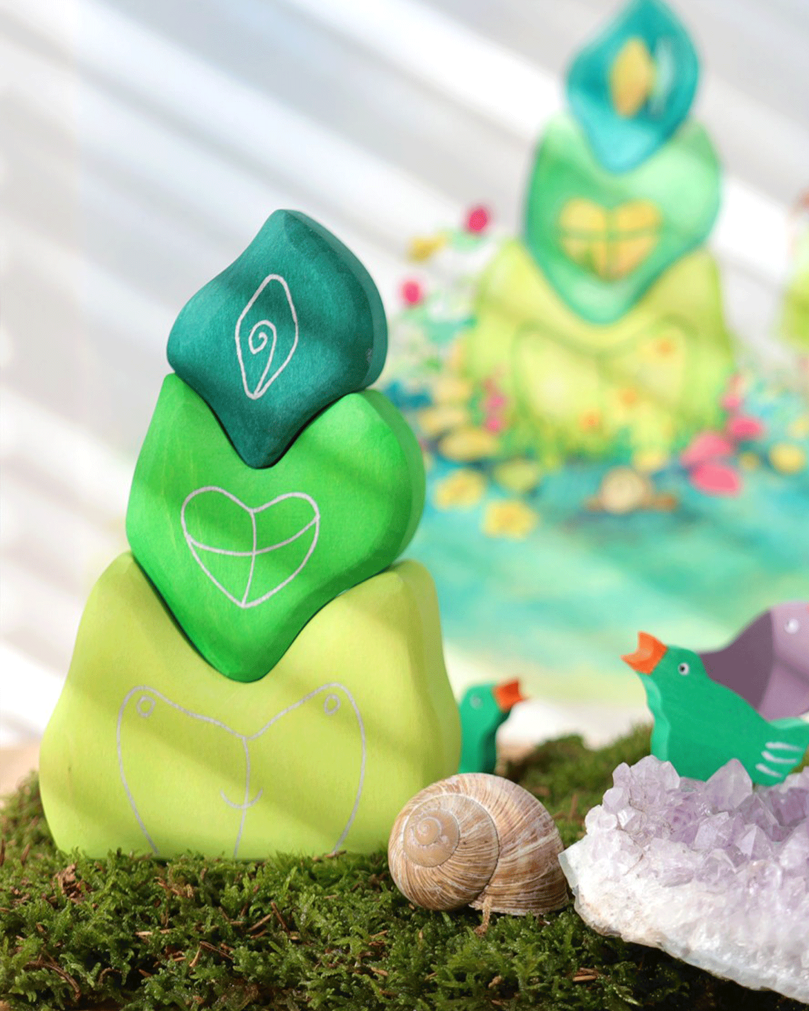 The 'Tower Leaves' consists of three pieces that fit together perfectly, and look beautiful on the shelf when not in play. A wonderful gifting idea.