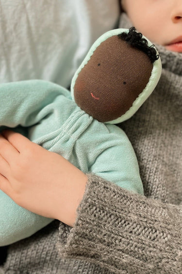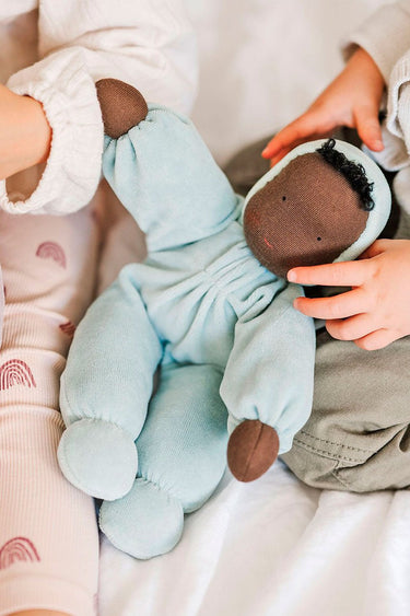 The Soft Doll from Grimm's is perfect for both small and big hands to hold and cuddle. It is soft, squishy, and 100% natural and safe with no harmful chemicals.