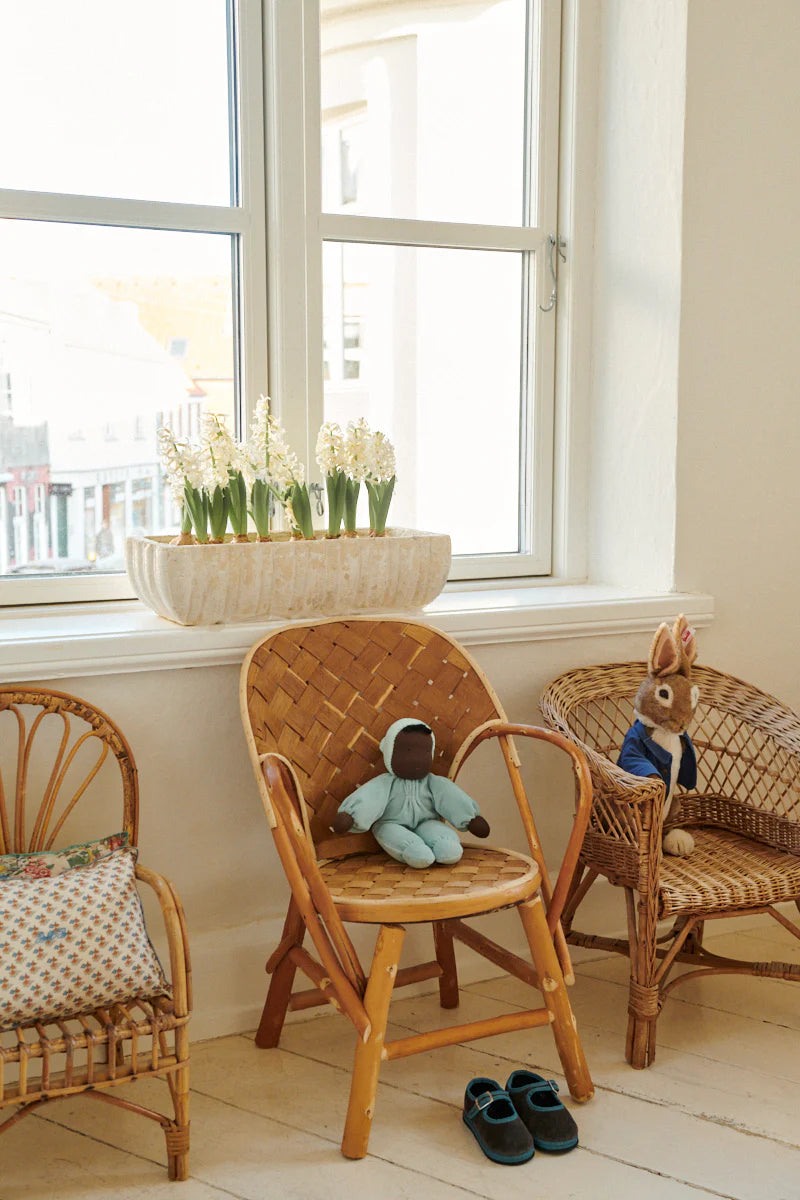 The doll's face is hand painted in a traditional Waldorf way with few features enabling babies and children to use their imagination and let play and creativity run free.