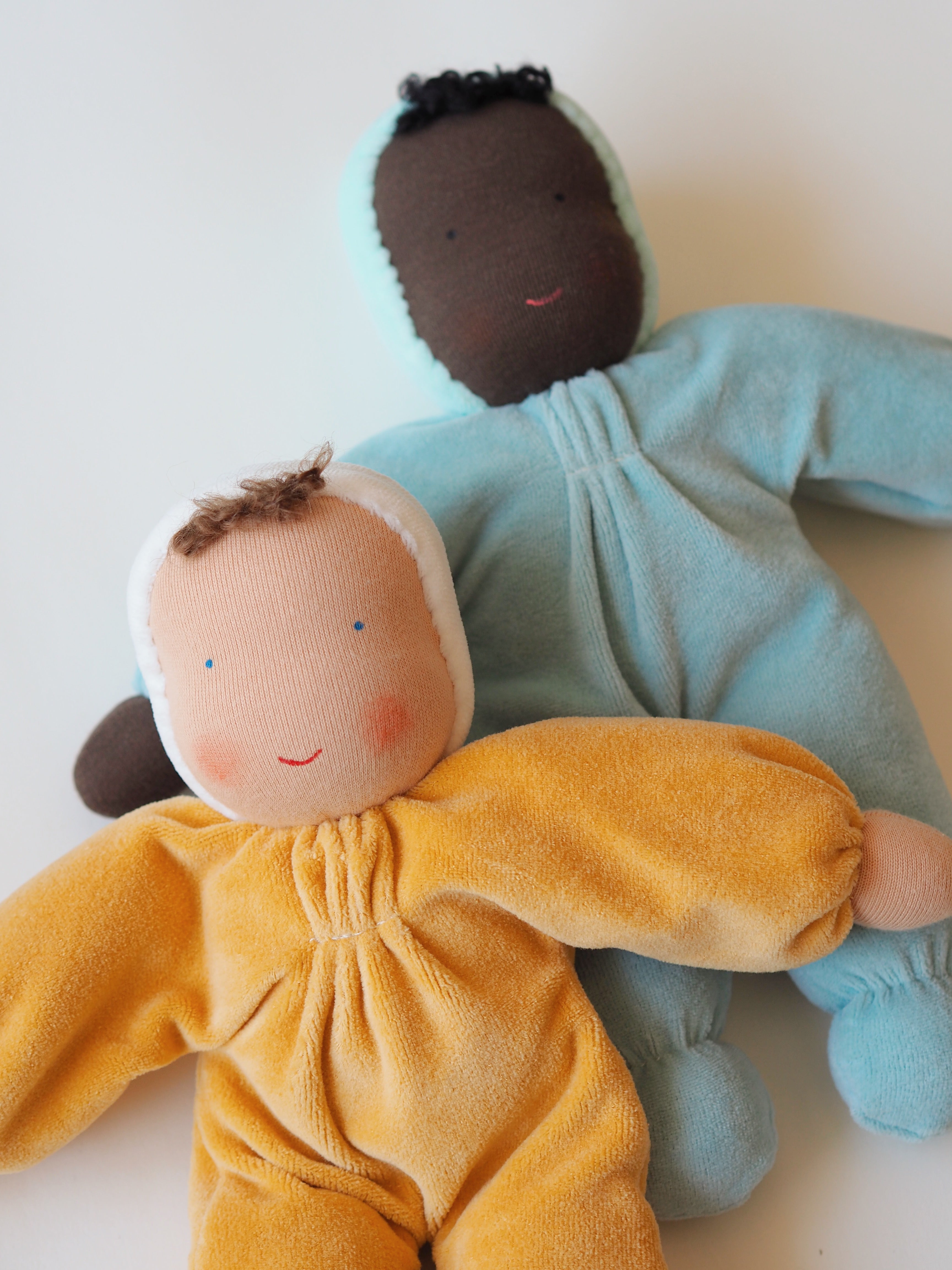 The Soft Doll is available in two beautiful colours. It is 100% natural and safe, and made with the use of organic Oeko-Tex Standard fabrics and water-based paints.