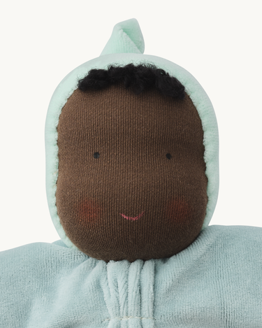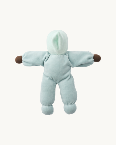 A beautiful, soft and cuddly doll in a beautiful mint blue colour.